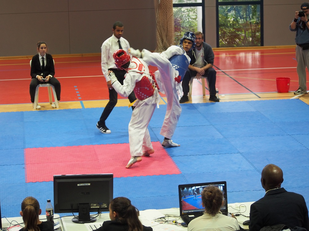 C est au tour de Lucas de se présenter pour sa finale. Sans faire offense a son adversaire on voit tout de suite qu ils ne sont pas du meme niveau. On s imposera alors des challenges a chaque round pour faire un peu de spectacle pour ce dernier combat. Lucas s impose facilement dans ce jeu du TAEKWONDO en concédant quand meme neuf pénalités, tout près de la disqualification…