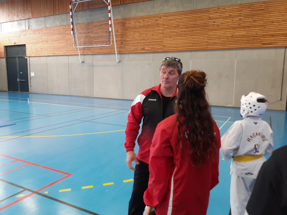 La nouvelle génération a fait ses premières armes et découvre la compétition. Une journée compliqué, plus chanceuse, plus facile pour les uns ou les autres, Camille s’ incline des le 1er combat a sa grande surprise et a la notre aussi, Luna après un super premier combat perd en demi finale sur une incompréhension totale, nous ne parlerons pas de vol mais d erreur d arbitrage a cet age, se classe 3e, Anabelle se classe 3e, Lorena largement supèrieure mais disqualifiée en demi finale, 3e aussi, Manon après deux victoires échoue aussi a la 3e place, Hugo le valeureux perd des le premier combat avec néanmoins une belle et courageuse prestation, Lucie malgré deux superbes victoires aux deux premiers combats échoue a la 4e place alors que la médaille de bronze était grandement abordable et méritée