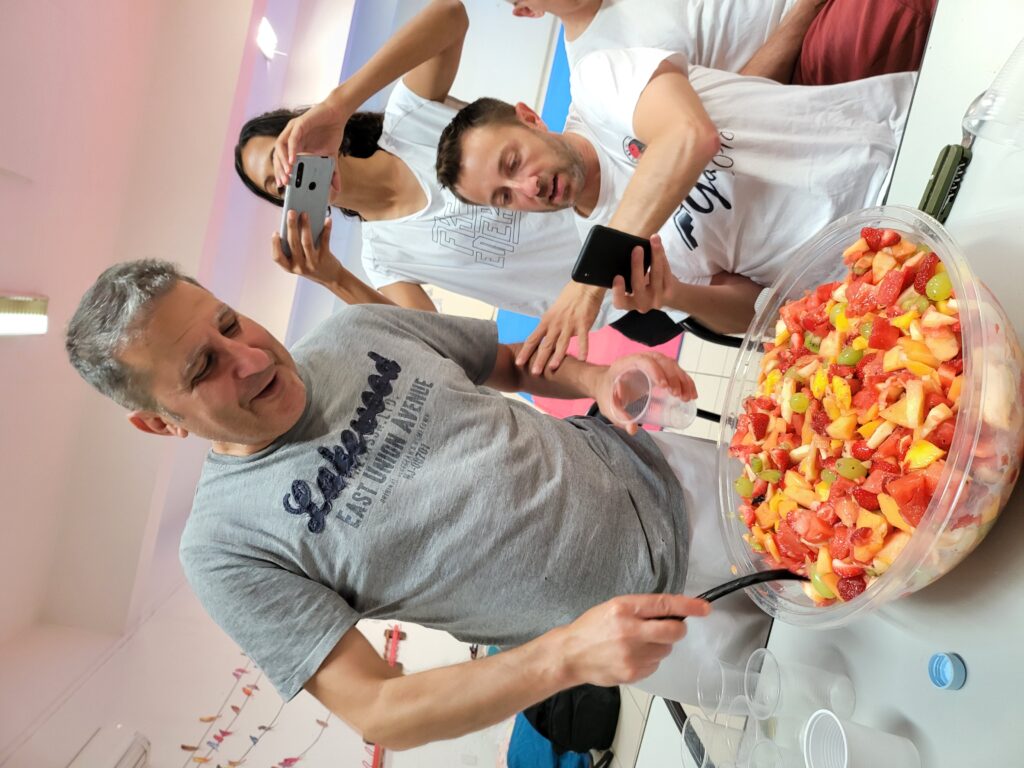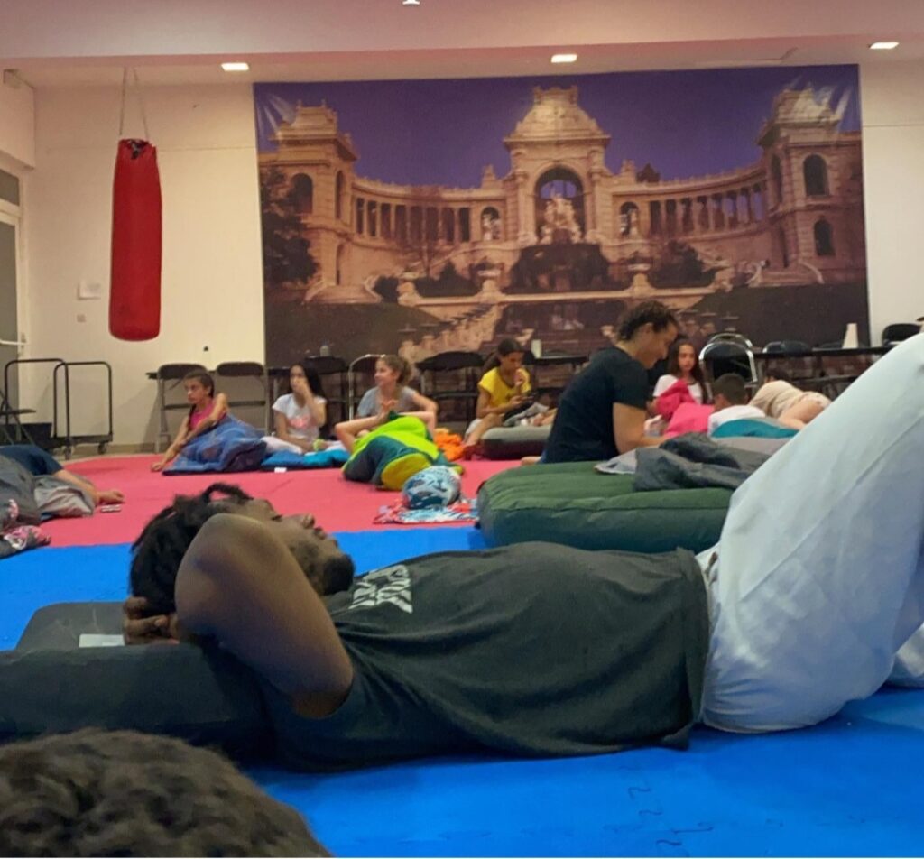 Comme d’habitude, tout le monde aide à la bonne ambiance, les repas sont toujours agréables, la piscine, et même dormir sur le sol c’est cool!