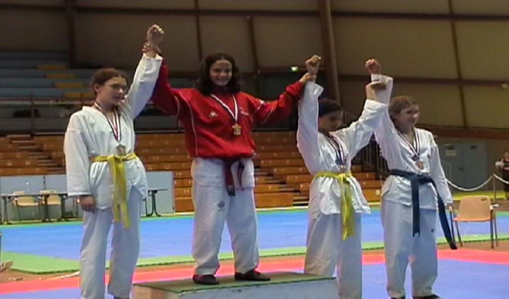 Photo1: Mélissa et son duit tchagi Photo2: Podium de Mélissa Photo3: Trophés de la meilleure combattante cadette pour Mélissa. Photo4 et 5: Podium de Manon Photo 6 et 7: Le scoop, Manon en"civil",dans un gymnase c'est plutôt rarissime, que ses "fans"(voir le forum) en profitent. |