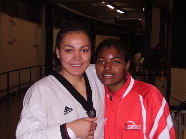 Caroline Photo 2 : Combattante et Coach après le titre. Photo 3 et 4 : Des retrouvailles heureuses, toute l'équipe de Tahiti s'était mobilisée derrière Caro jusqu'au sacre. Photo5 et 6 : Le podium de Flora -72kg. Photo7 : Le podium de Caroline +72kg Avec les couleurs Tahitiennes sur le dos. Photo8 et 9 : Rencontre insolite dans le TGV avec la sprinter Muriel Hurtis |